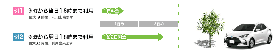 料金は税込みです。本プランは短時間のご利用でも一日単位で弊社営業時間内の貸出・返却となります。