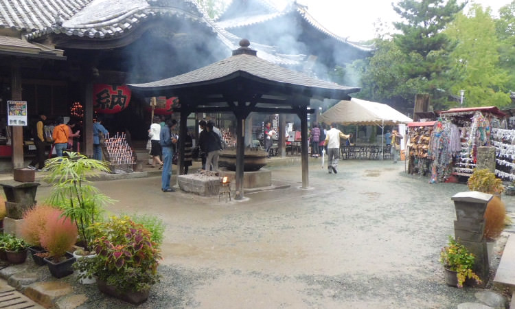 The temple Ishiteji is located near Dogo Onsen. The main path to the temple is lined with various souvenir shops, restaurants, and bars.