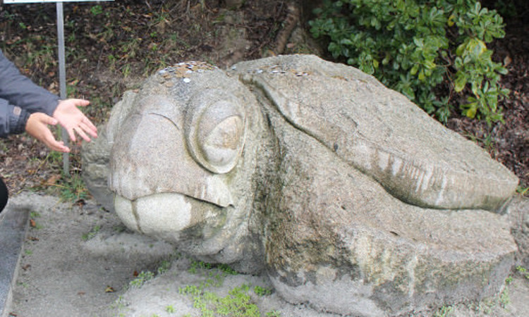 This is the great turtle stone statue, which is where the name Mt. Kiro (Old Turtle Mountain) comes from.