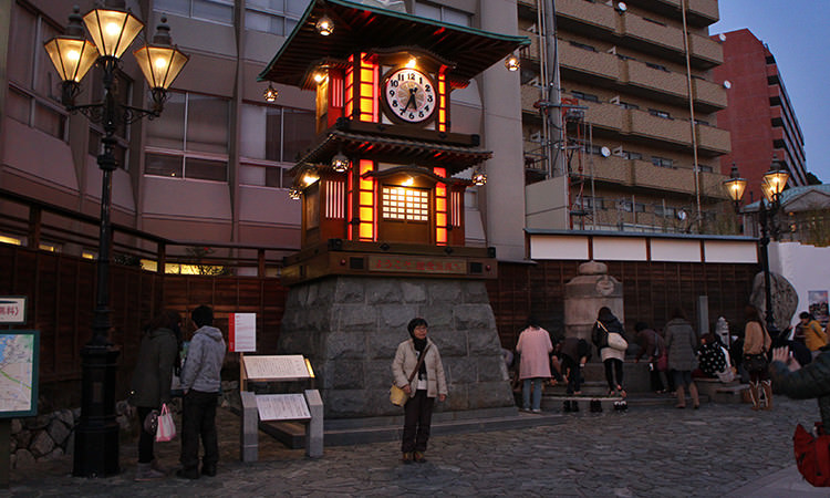 This is a famous clock with revolving puppets. Each hour, music and characters from the Natsume Soseki–novel Botchan greet visitors.