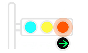 A red signal light means “stop” and a green signal light means “go.” If a signal in front of you is red, you must wait until the signal turns green. If a green arrow flashes, however, you can drive in the direction of the arrow.