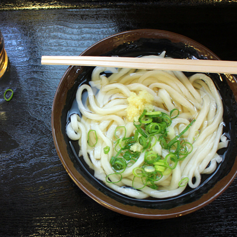 釜揚げうどんの上にバターをひとかけら。それに生卵、黒コショウ、だし醤油をかけていただきます。釜玉とはひと味違う和風カルボナーラの風情で意表を突かれますが、味と食感のまとまりがよく、うどんの新境地を発見できます。うどん店にしては営業時間も長く、利用しやすいお店です。