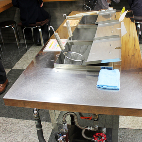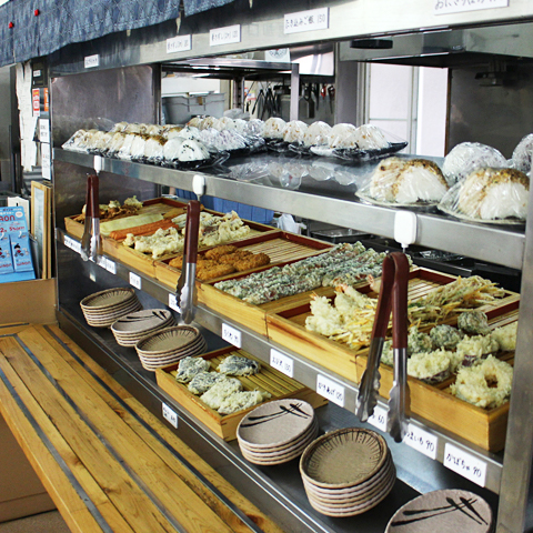 揚げたての天ぷらが人気で、半熟卵・ちくわ・げその3種類は、注文すると揚げたてサクサクで出てきます。もっちりした麺にすっきりおいしいダシをかけ、天ぷらをのせていただきましょう。
